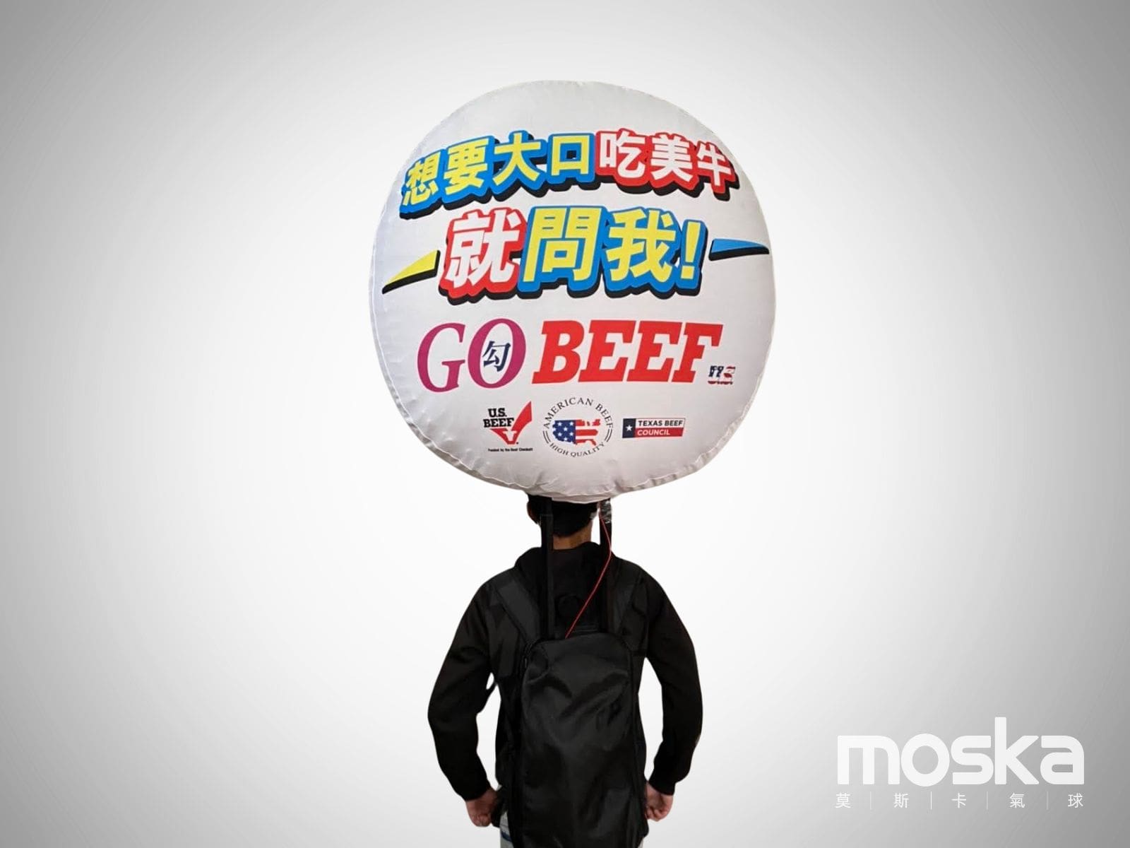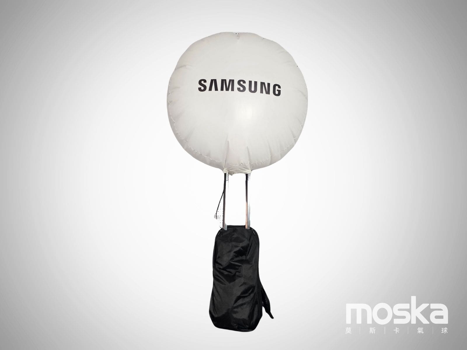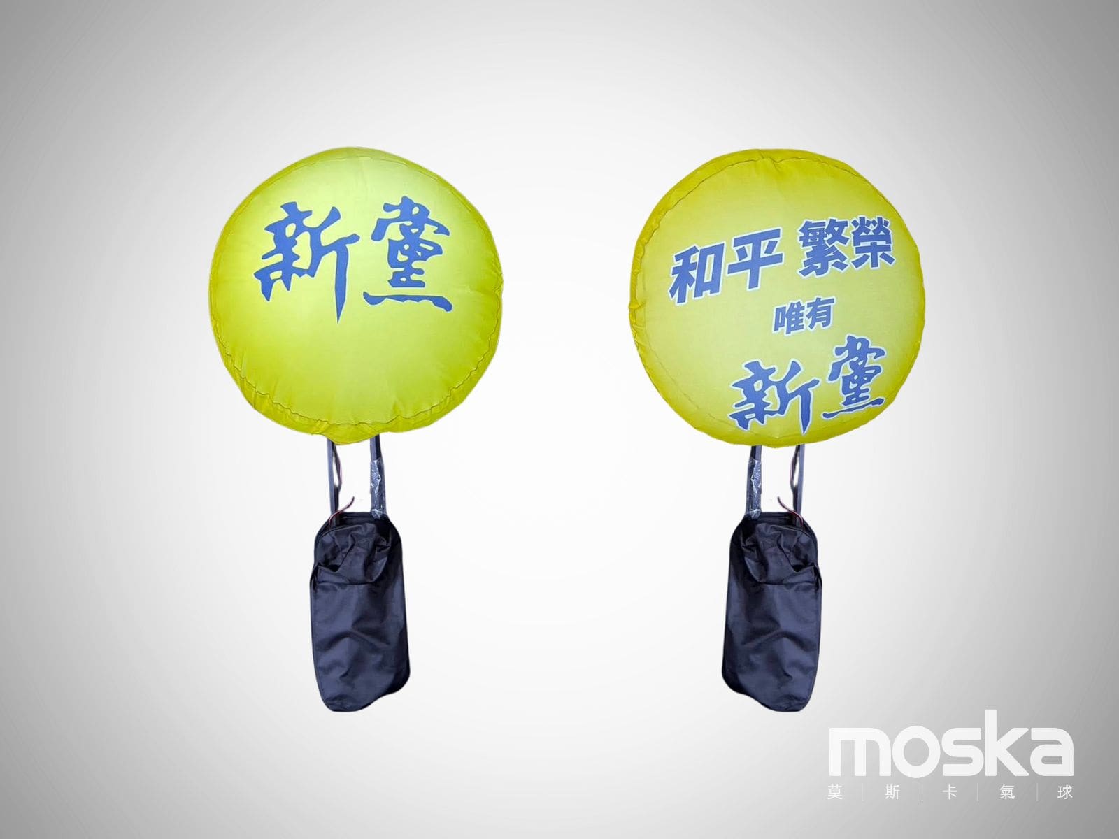 背包氣球標準版為直徑90公分圓形看板雙面列印,不管是定點宣傳或是掃街式拜訪宣傳,背包氣球一定是最吸引眼球的存在。
